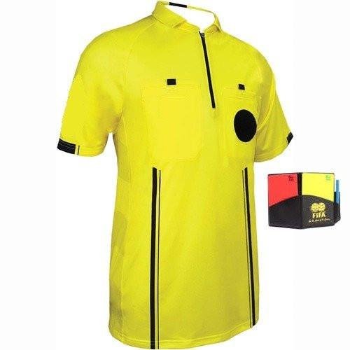 New Pro 2018 Soccer Referee Jersey Short Sleeve100% Polyester Knit Shirt with Zip Collar2 Velcro Pockets with TabsNew Updated Sleek Design & FitZippered CollarLightweight Wicking FabricBreathable Mesh Side Panels