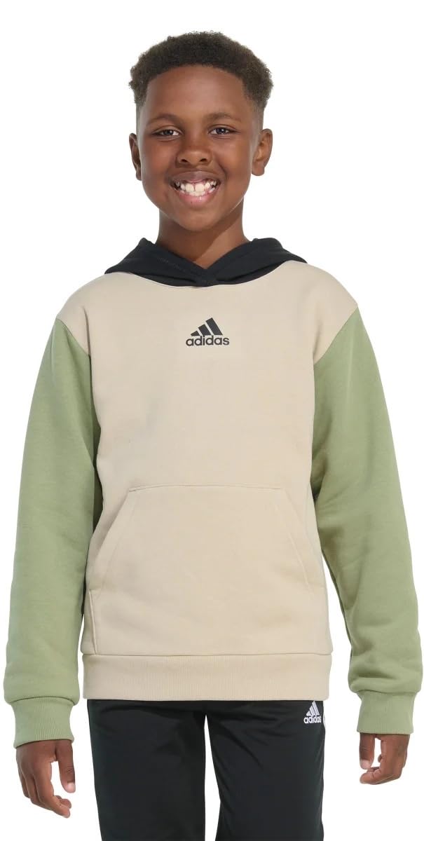 Adidas Youth Boy's Fleece Long Sleeve Graphic Logo Pullover Hoodie (US, Alpha, Large, Regular, Tan)