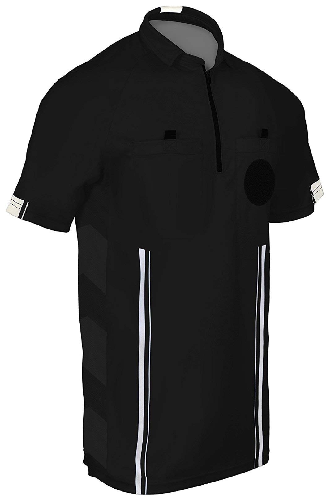 Referee Soccer Jerseys New Updated Sleek Design & Fit Zippered Collar Lightweight Wicking Fabric Two Hidden Pockets w/Velcro Closure & Pull Tabs Breathable Mesh Side Panels Referee Shirts are available in gold, black, red, blue, and green. 100% Polyester moisture wicking 1 Velcro Disc located on the Shirt