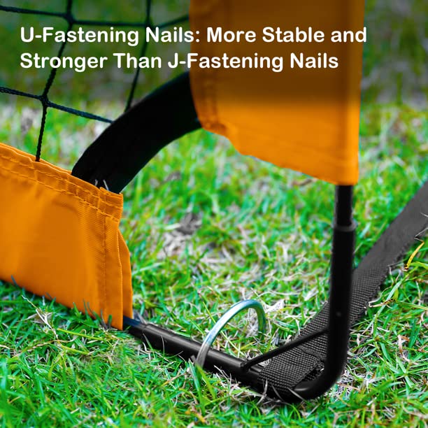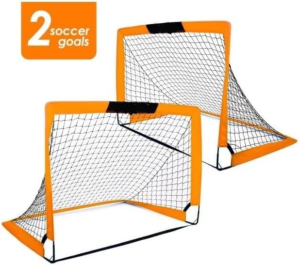 Product details Still thinking about what fun parent-child activities with children? Playing soccer with children, A Great Game for Parent-child interaction. Playing soccer is a good parent-child interactive game, which not only strengthens the connection between children and parents, but also improves children's learning ability and flexibility. Where there is Soccer Goal, there is a soccer field. Playing Soccer can not only cultivate team awareness, develop friendship, but also improve coordination, exercise flexibility, cultivate patience and personality. In addition, playing soccer will give you a powerful heart and cardiovascular system, so that the coronary artery has enough blood to supply the heart muscle, thus preventing various heart diseases. Durable(8 x Fastening nails ) U-peg ground anchors are included for simple attachment. Saving Space & Portable Foldable Size 4x3FT, all the components are easily portable. Many customers reported that the goal was disassembled and assembled very easily and quickly, so you should have no difficulties moving it from place to place. Teens benefit from goals The perfect portable soccer nets set for training, practicing drills or having a fun-filled game of soccer with friends in the backyard, park or even the beach! Take your game to the next level with this soccer goal set. Package Size :18*8.5*47.5 cm/7.09*3.35*18.7 inch Unfolded Size: 120*80*80 cm/47.24*31.5*31.5 inch We tried to ask help from a professional fishing net manufacturer to design a type of strong net for our soccer goal, now you can see it, even a young adult can hardly tear up the soccer goal net. Package Include: 2 x Soccer Goal nets 4 x Collapsible rods 2 x Connecting rods 8 x Fastening nails 1 x Storage bag